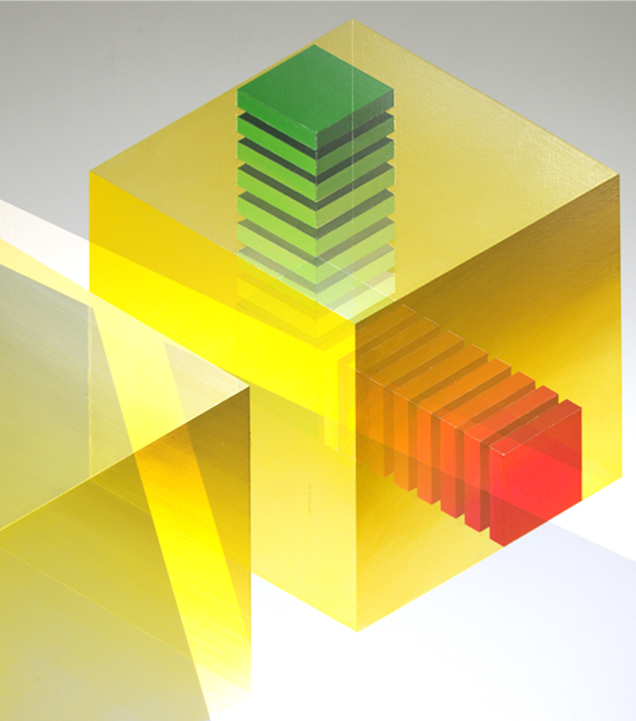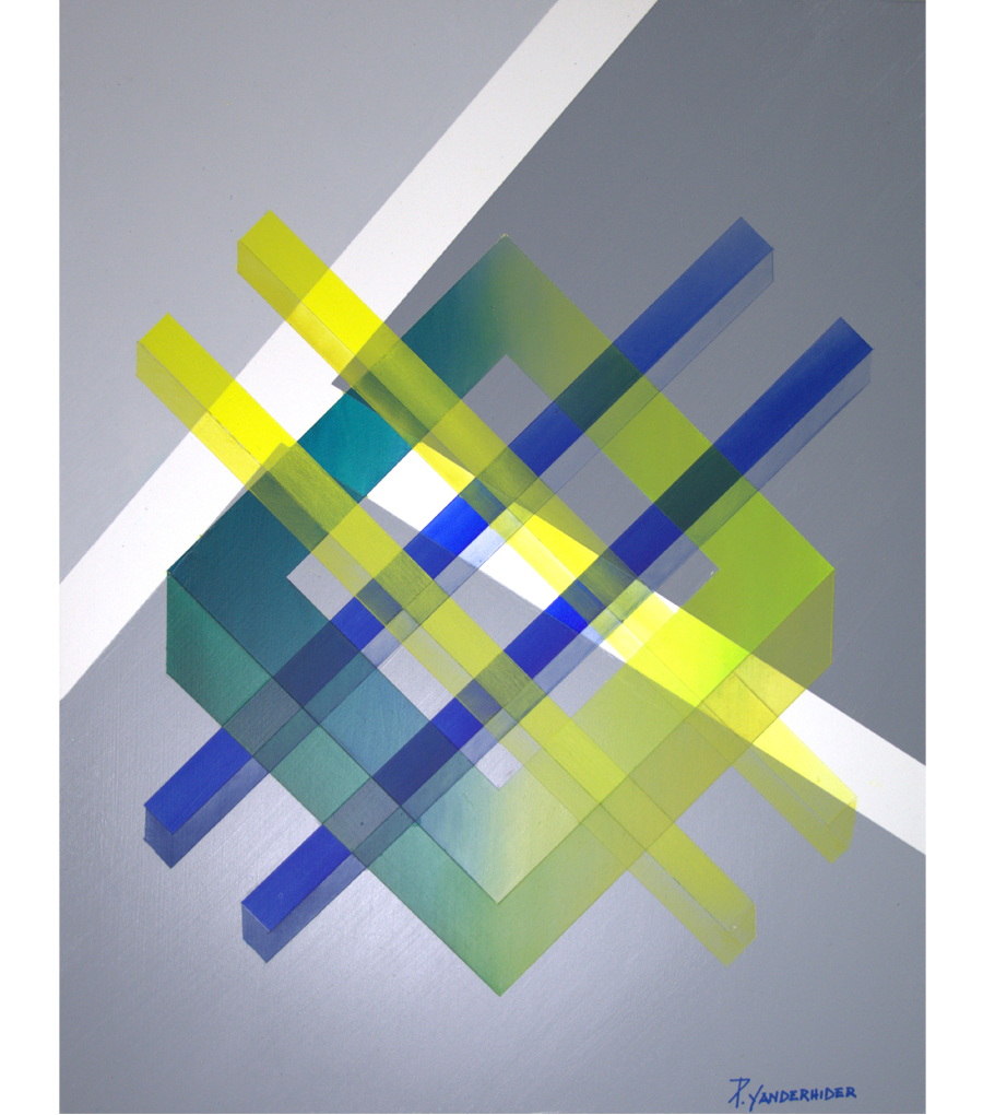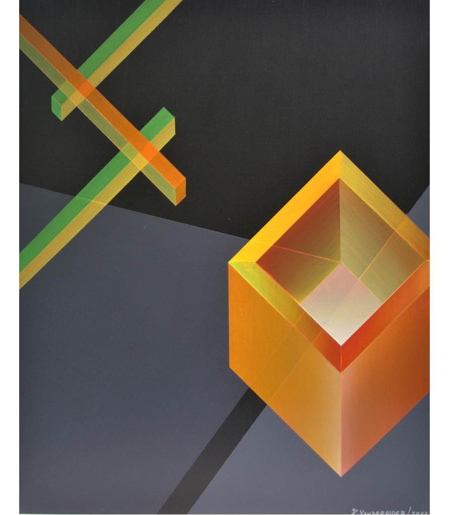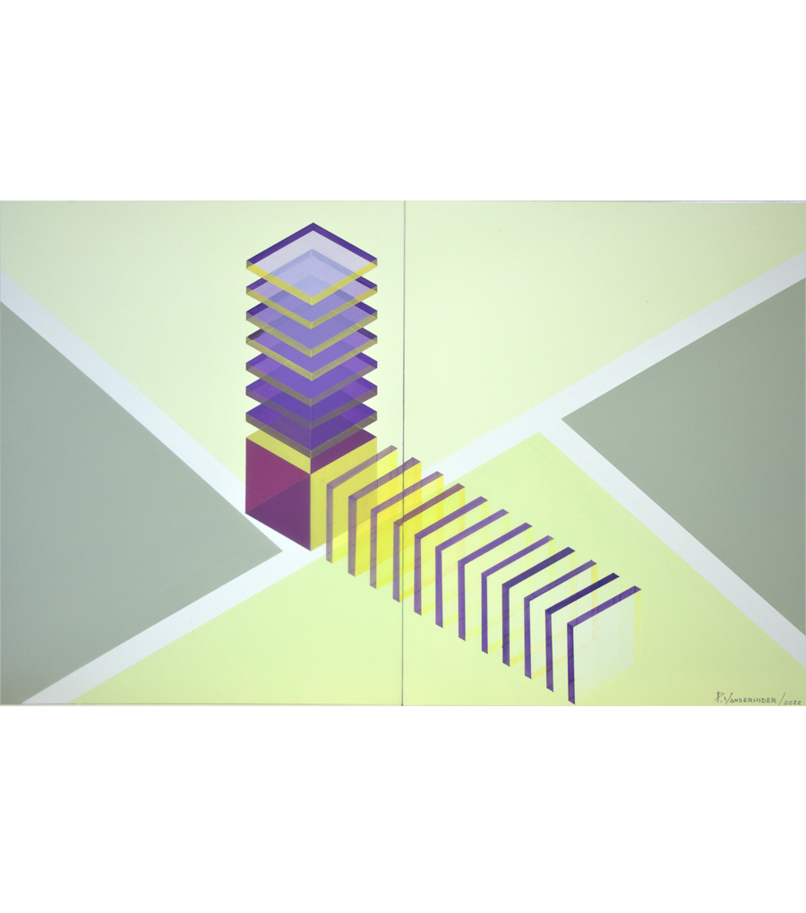 With these contemporary geometric compositions I want to reflect how a simple line and multiple layers of transparencies can create multiple illusions and let the imagination do its part.
